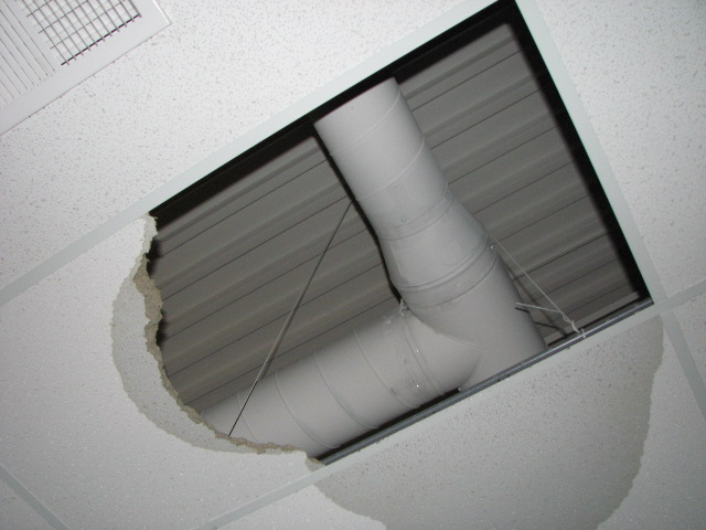 behind the building. With the air conditioning unit gone, water poured into the studio. The water damaged